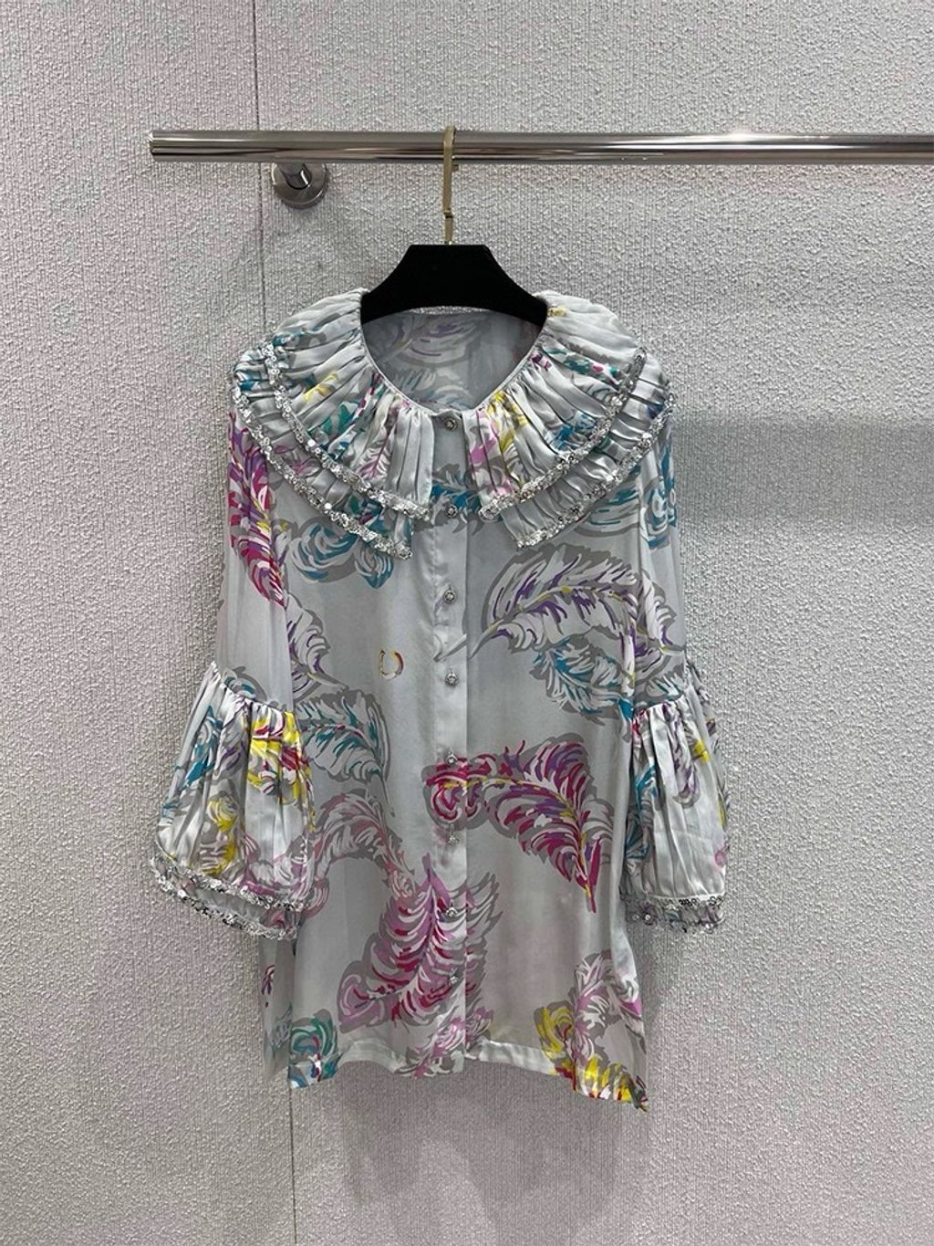 Indie Designs Feathers Silk Charmeuse Blouse