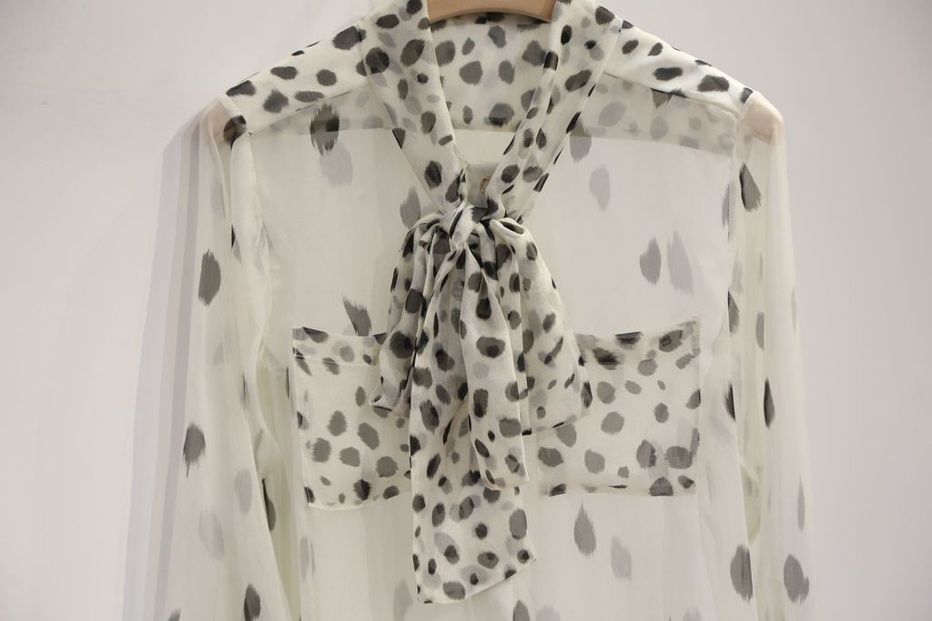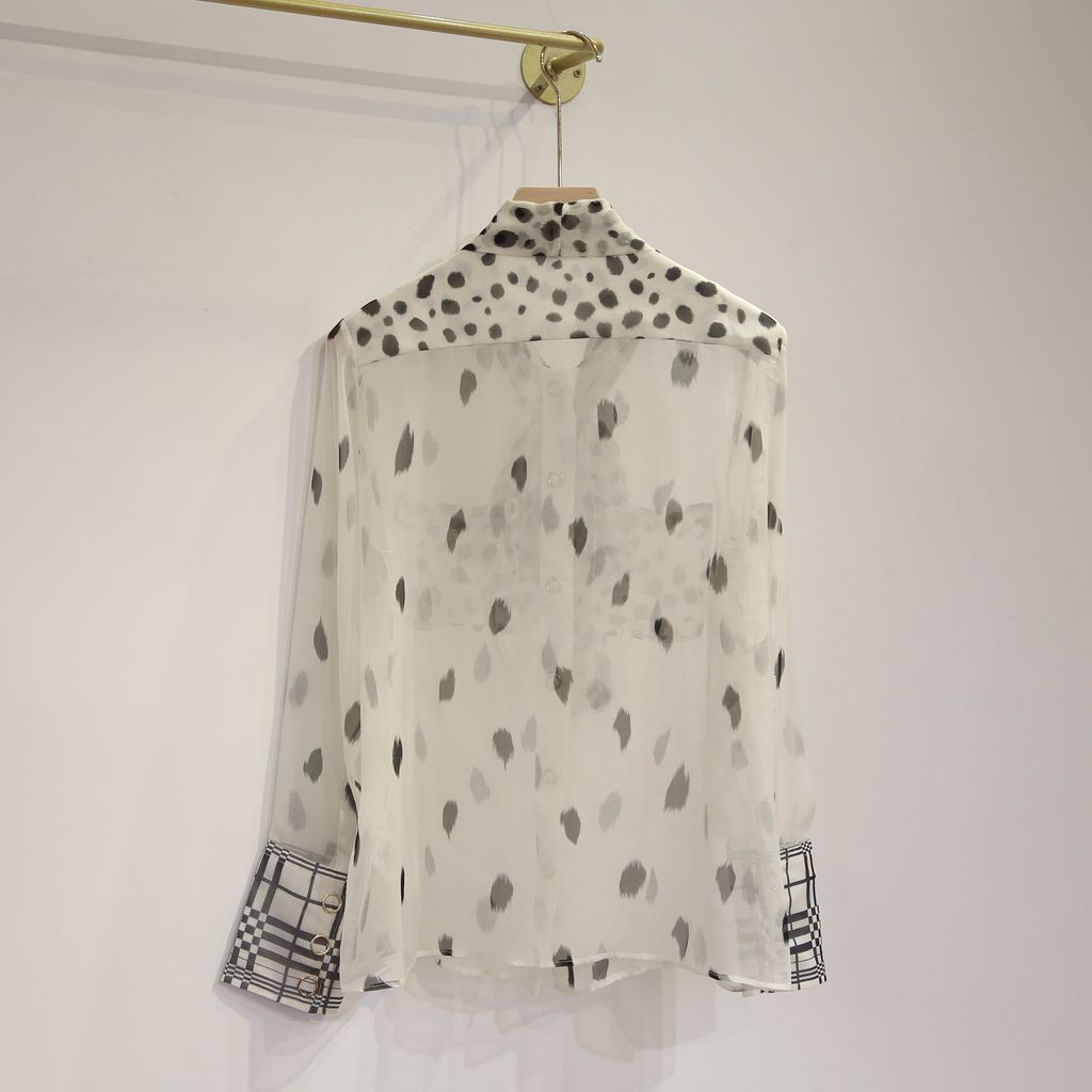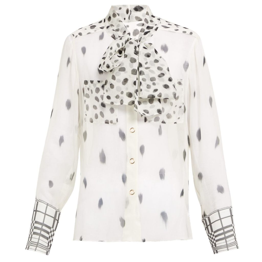 Indie Designs Pussy-bow Dalmatian Print Silk Blouse
