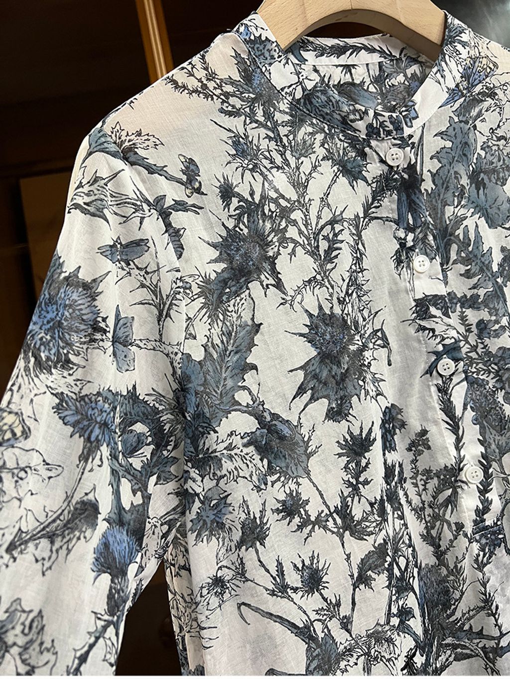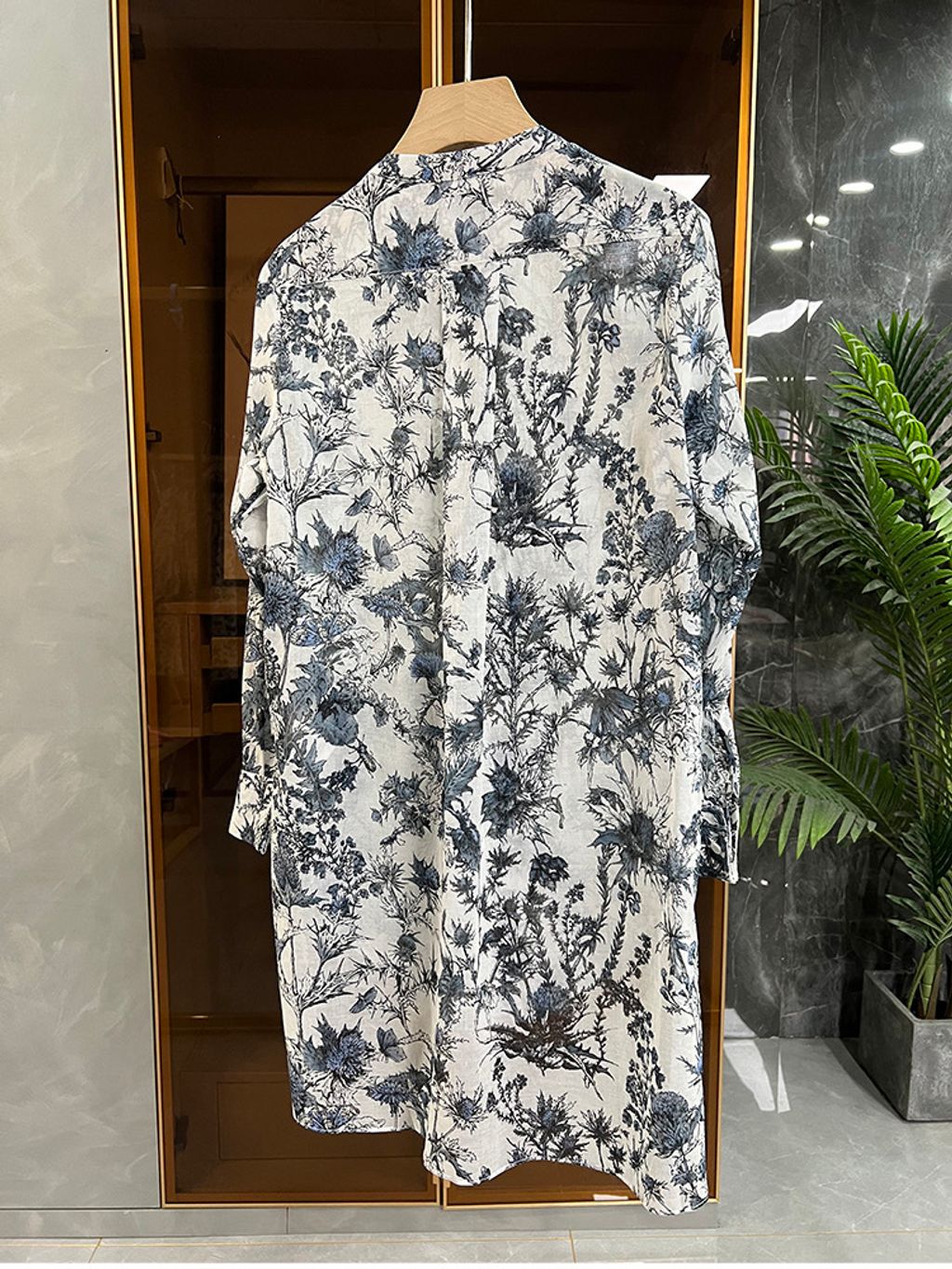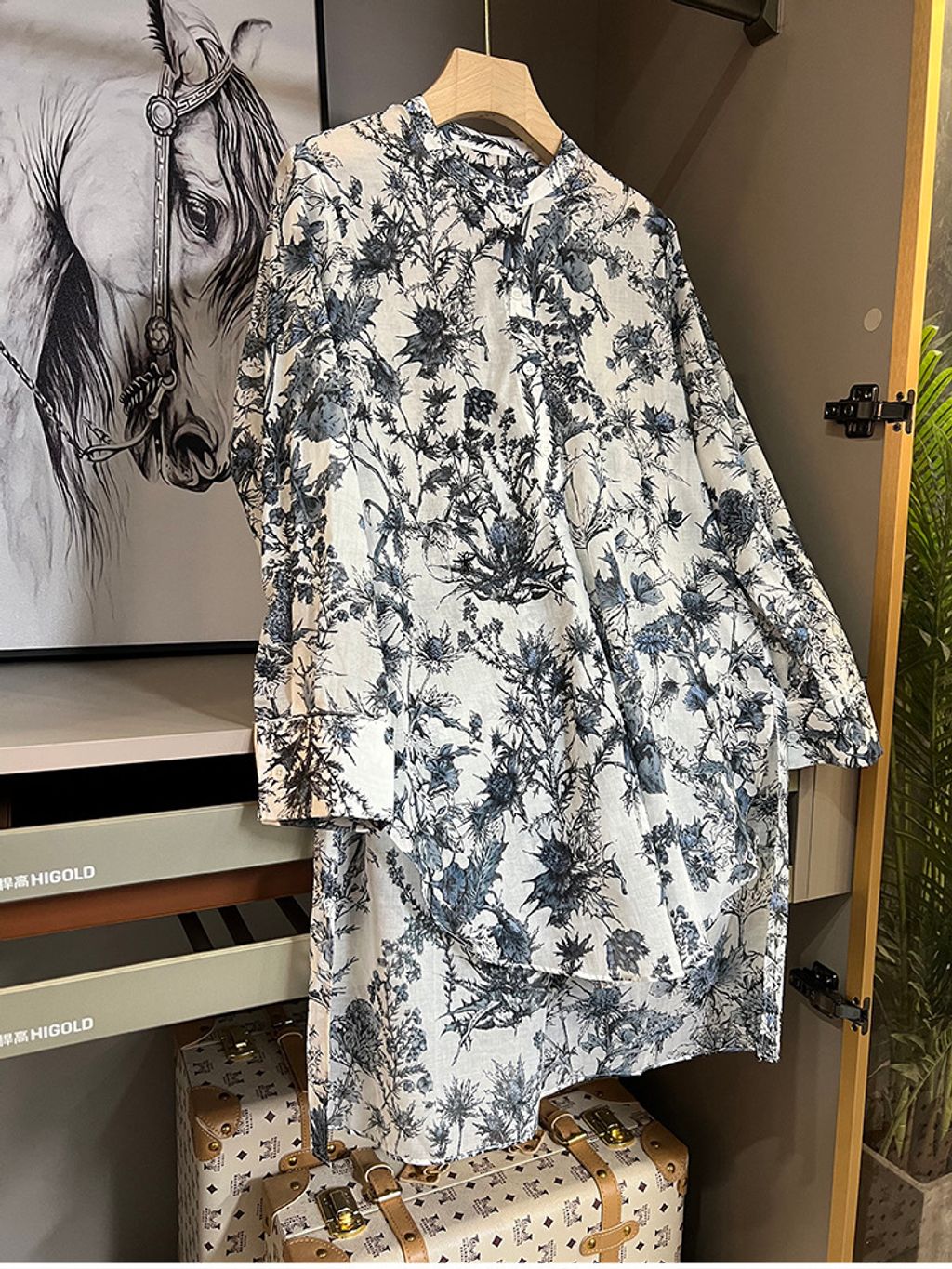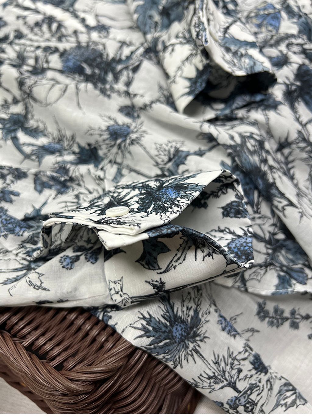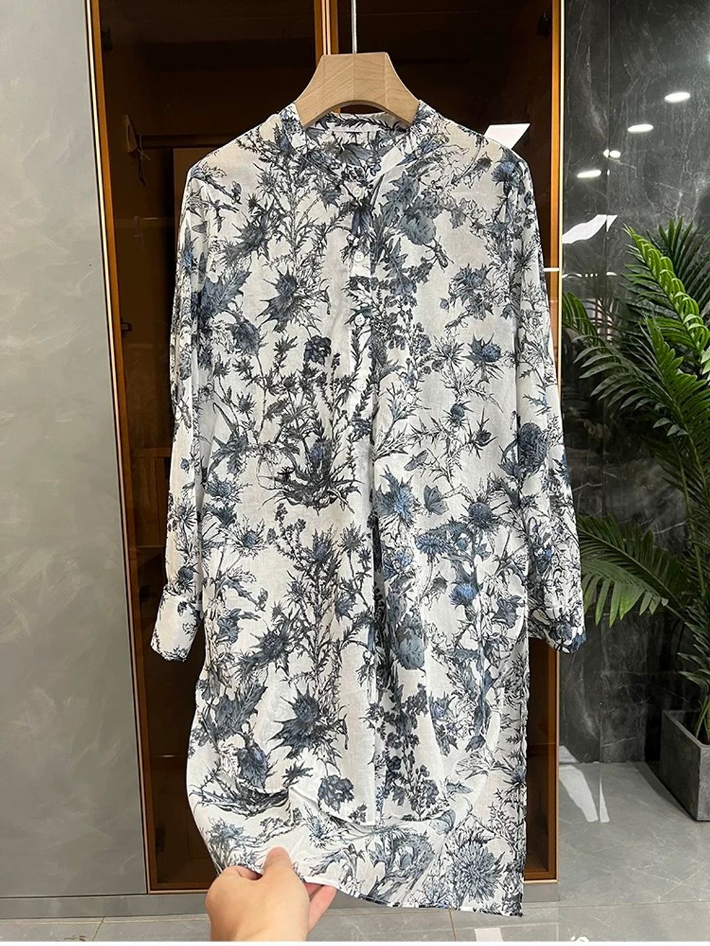 Indie Designs White Cotton Muslin with Blue Long Blouse