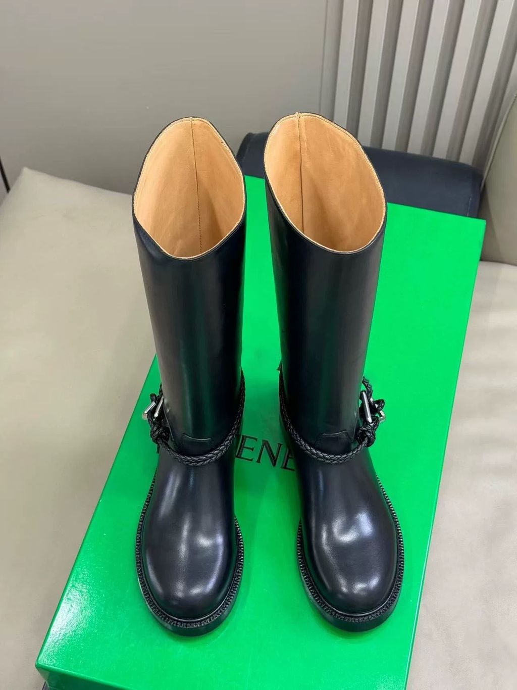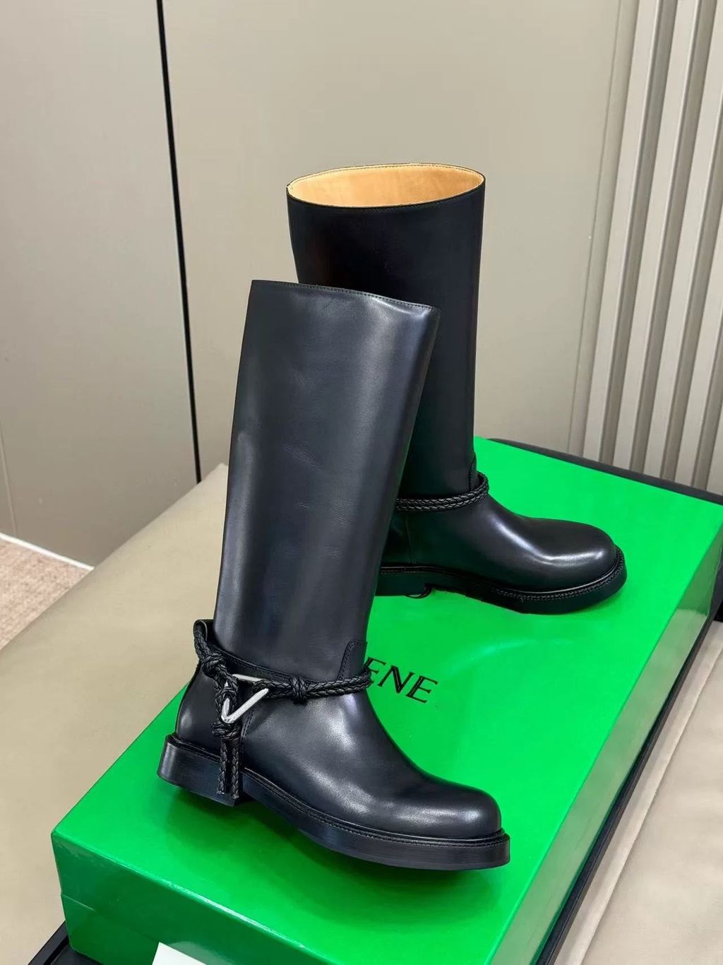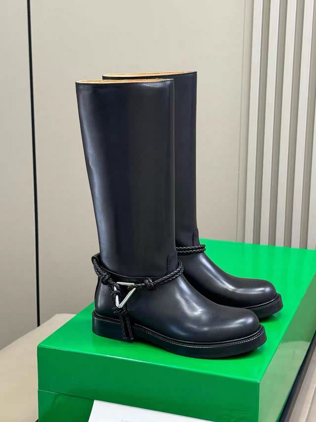 Indie Designs Intrecciato-trimmed Leather Knee Boots