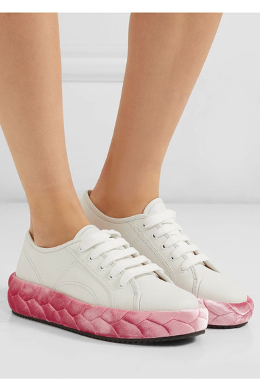 Indie Designs Leather and Quilted Velvet Platform Sneakers