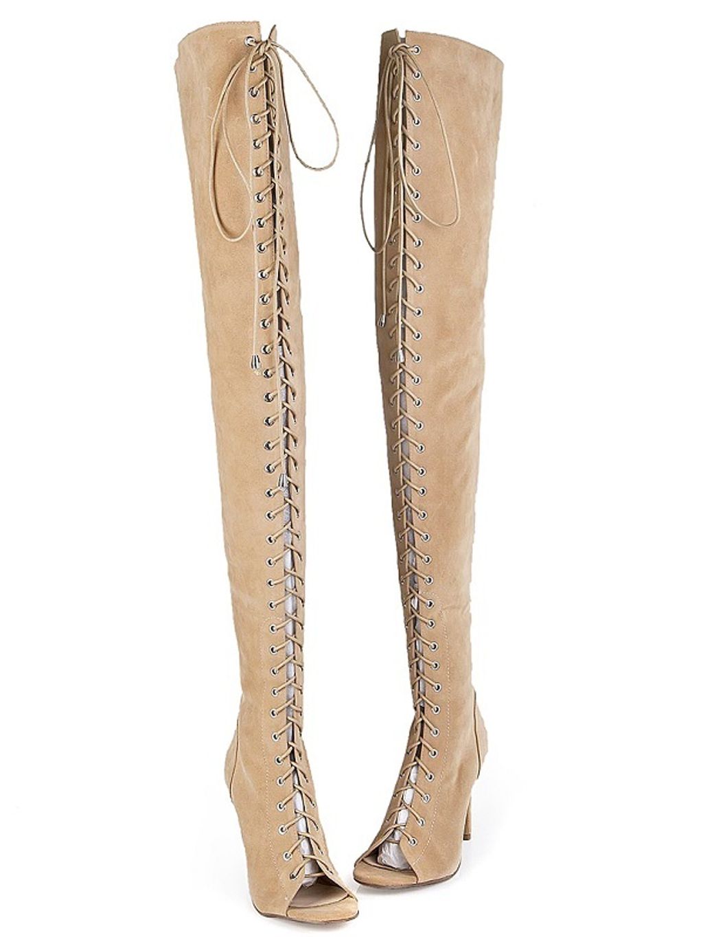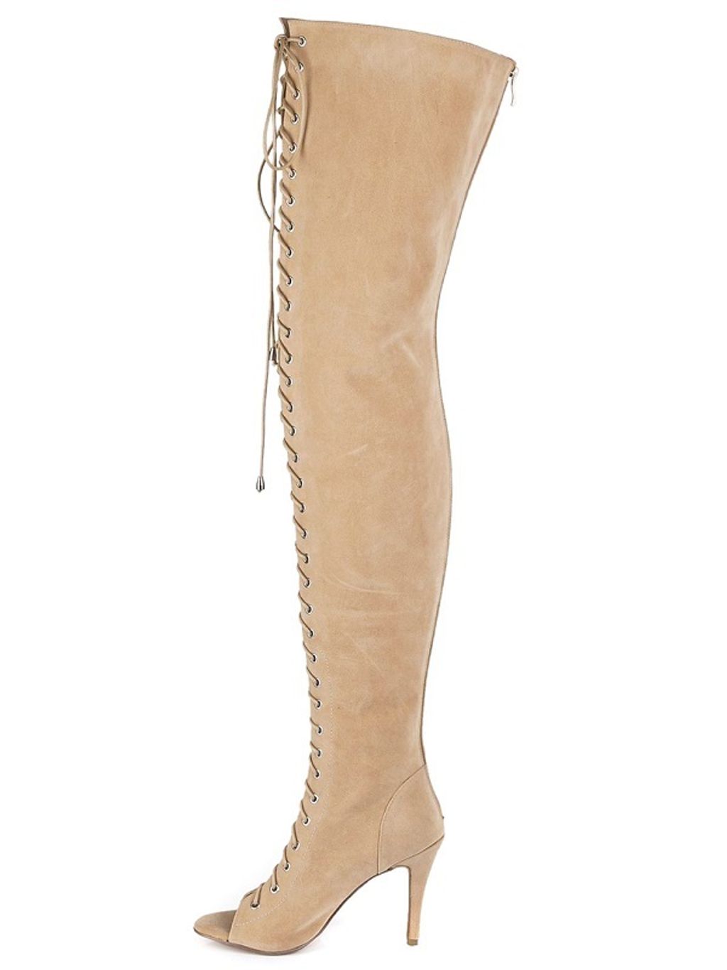 Indie Designs Over The Knee Lace-Up Peep Toe Boots