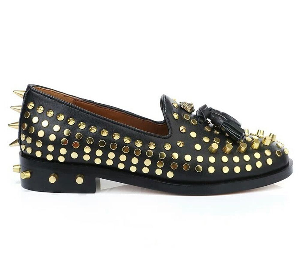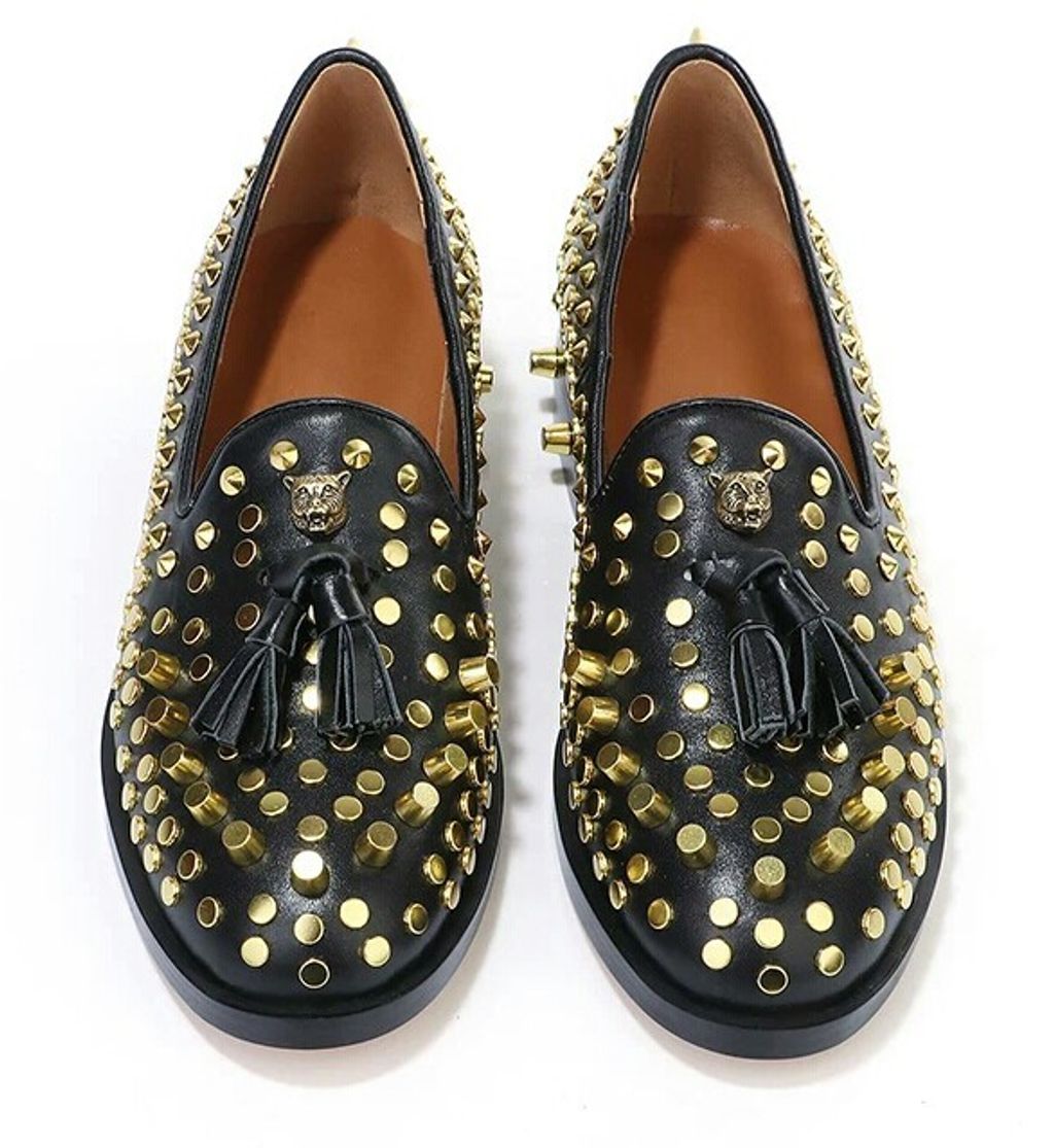 Indie Designs Sagan Studded & Tiger Leather Fringed Loafers