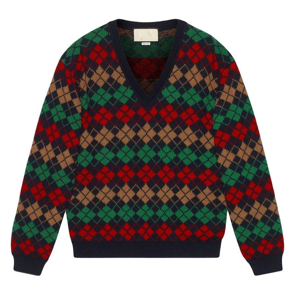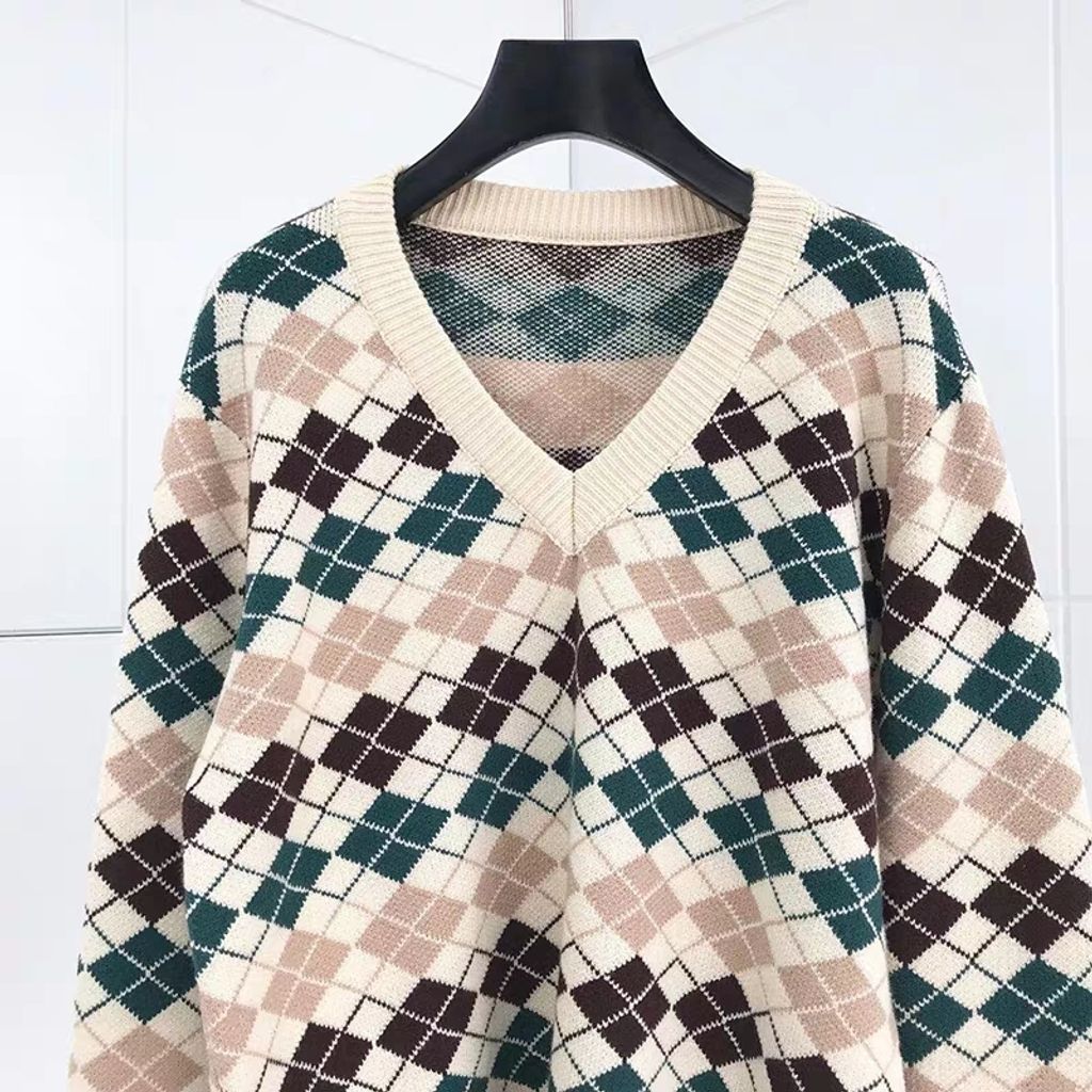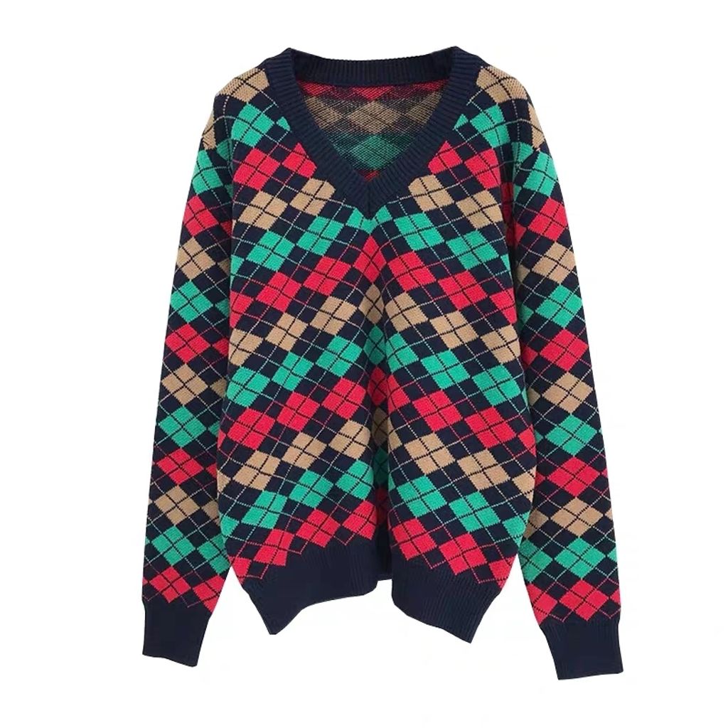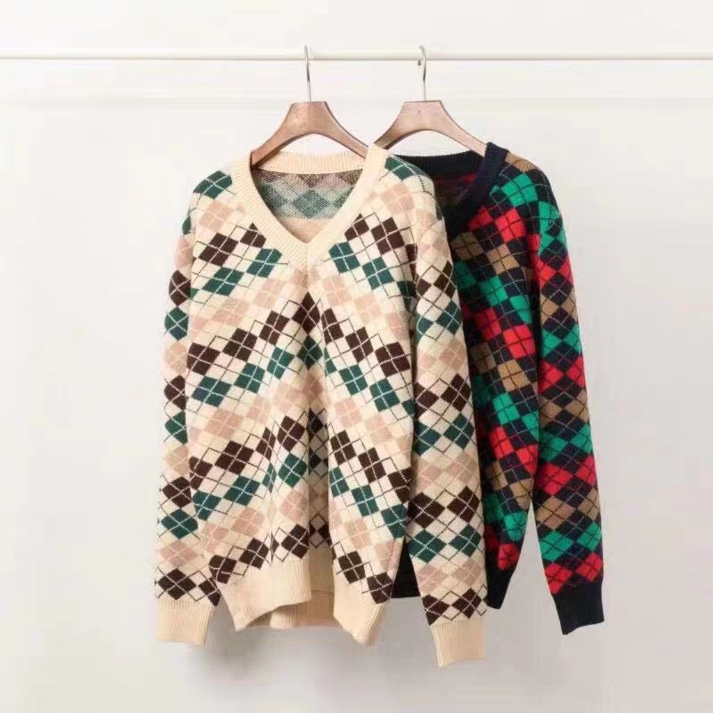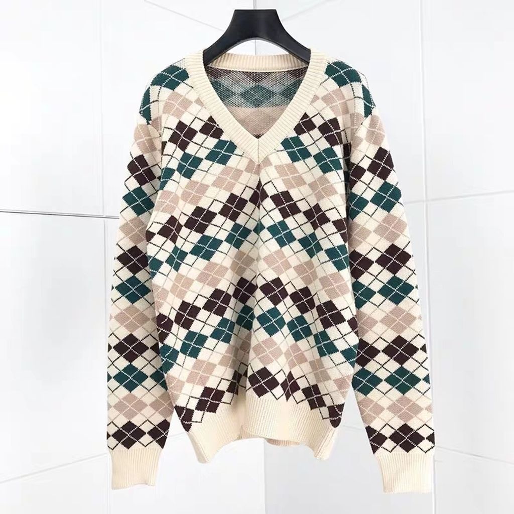 Indie Designs Argyle Alpaca Wool V-neck Jumper