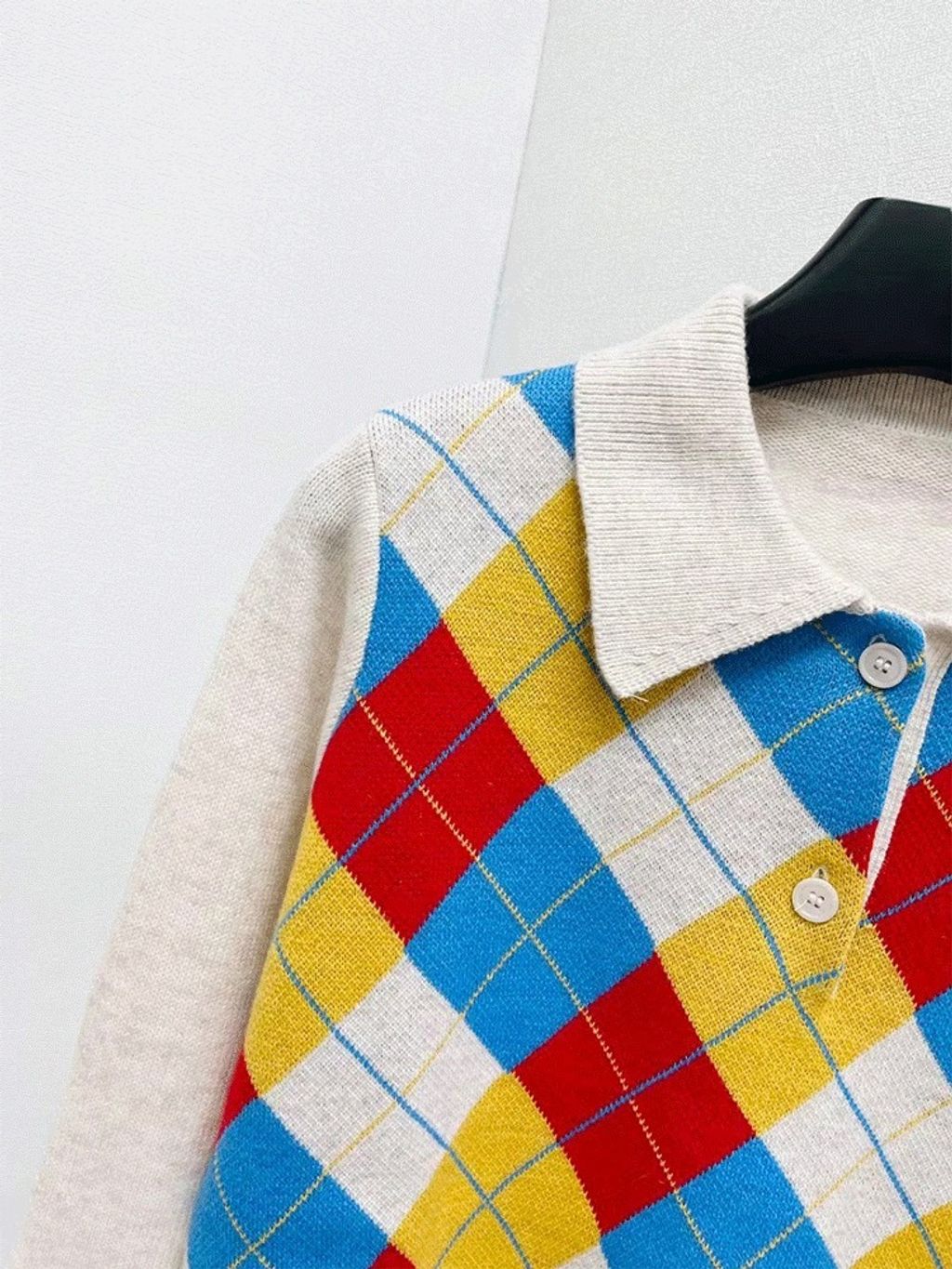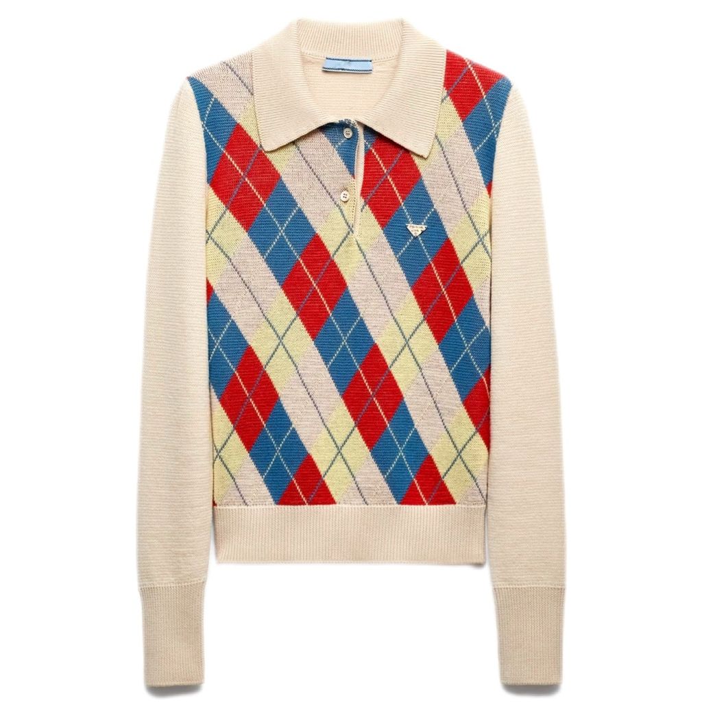 Indie Designs Argyle Knit Wool Polo Shirt