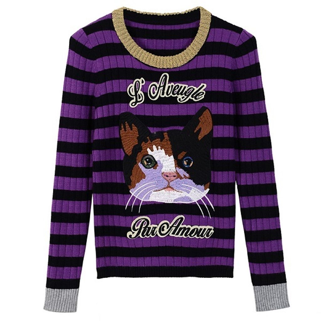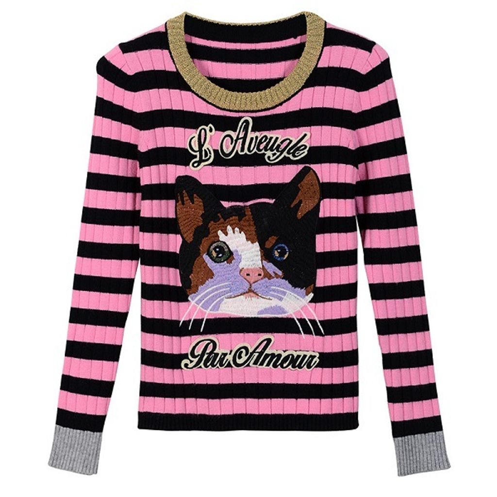Indie Designs Cat Embroidered Cashmere and Wool-blend Sweater