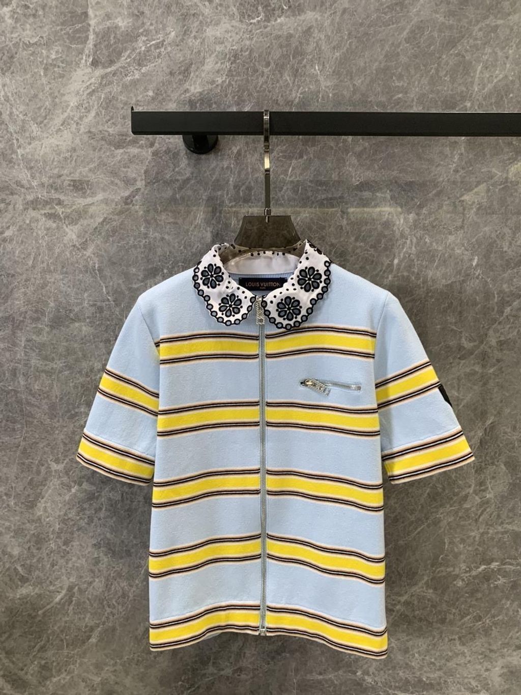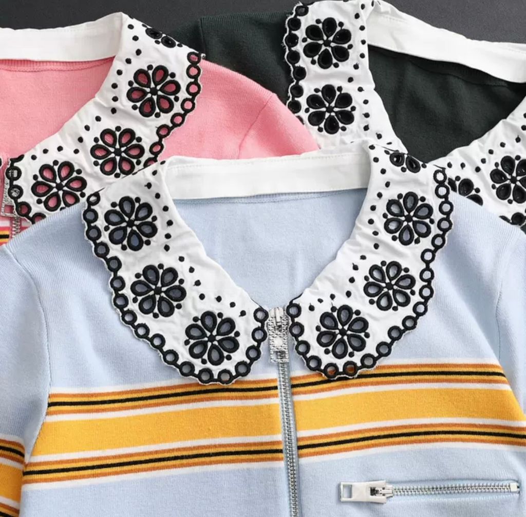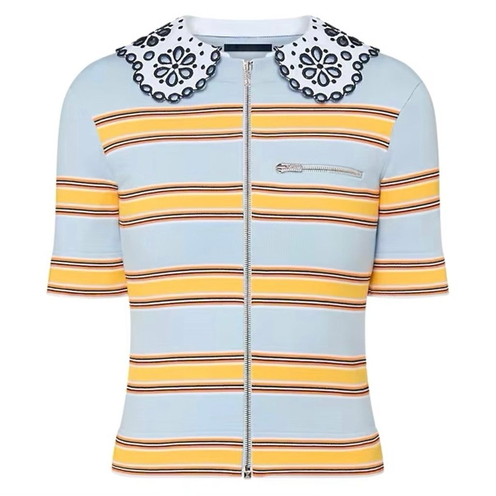 Indie Designs Collar Detail Striped Knit Top