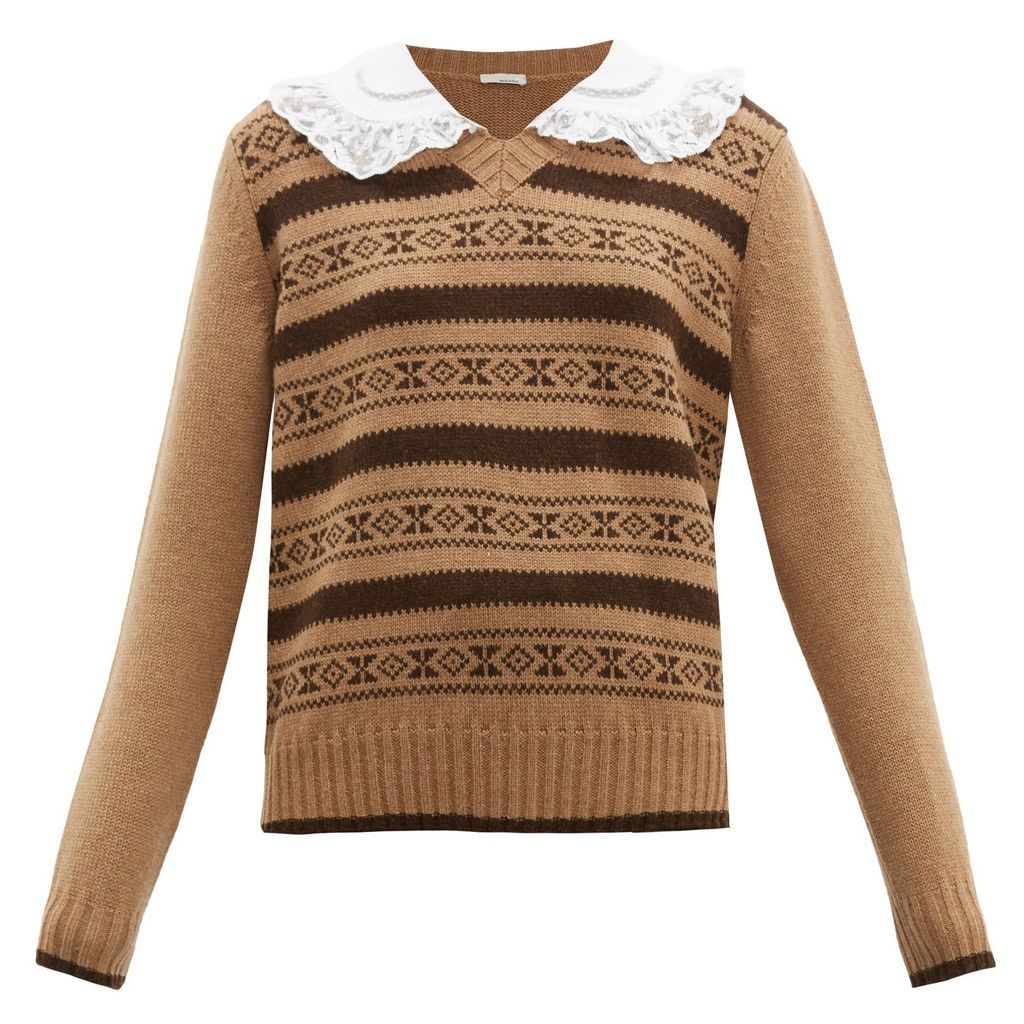 Indie Designs Contrast-collar Fair Isle Camel-hair Sweater