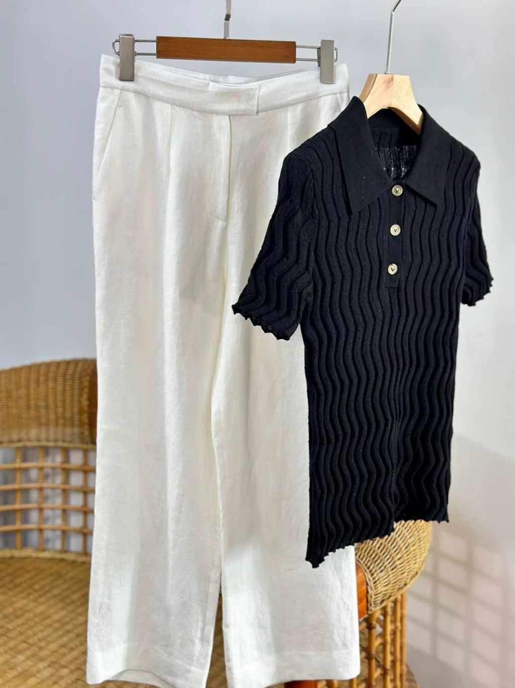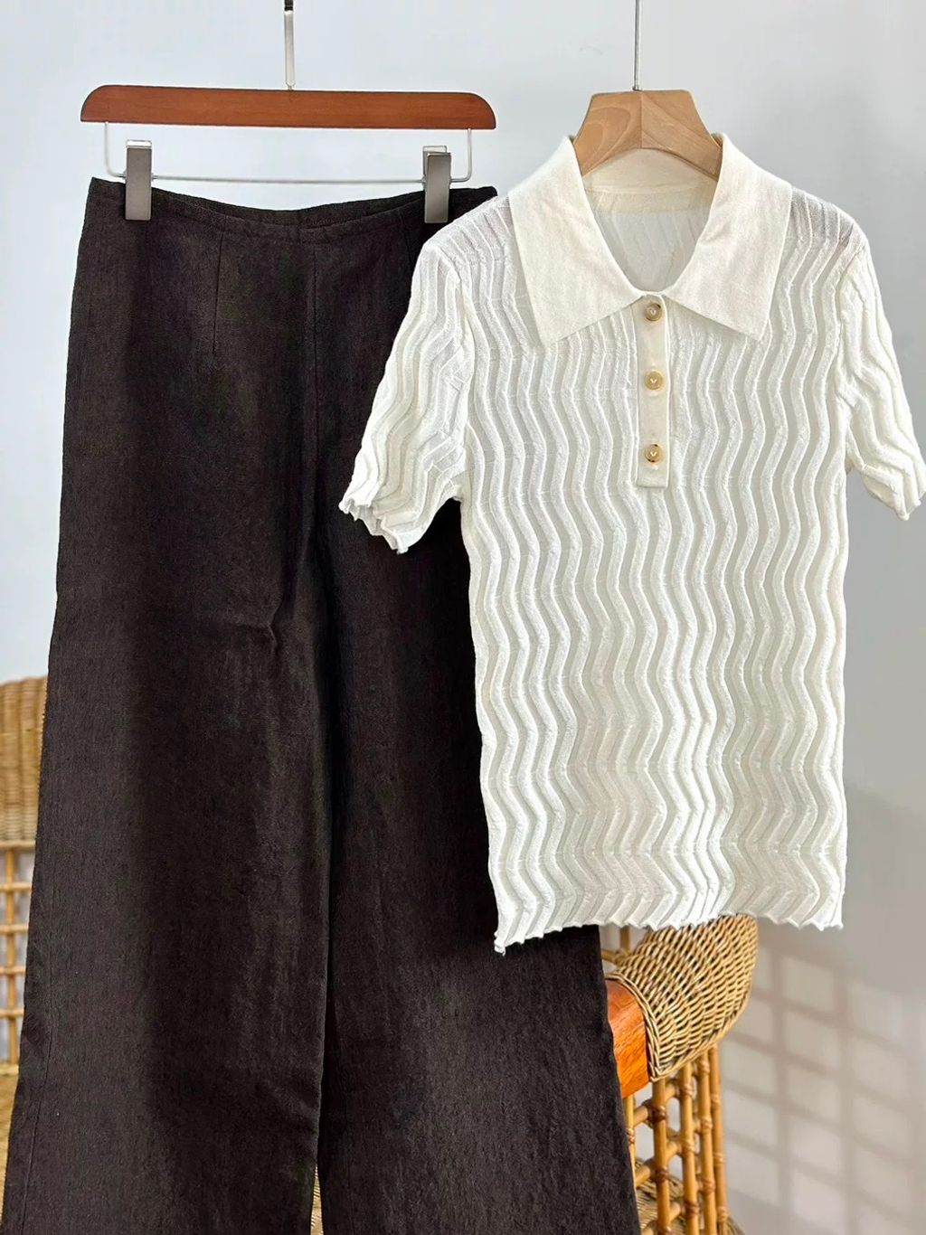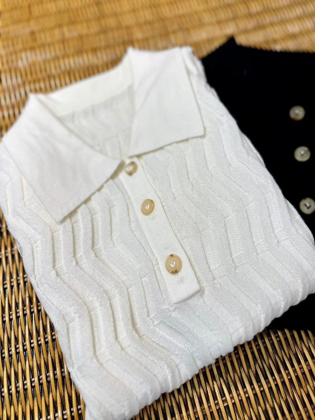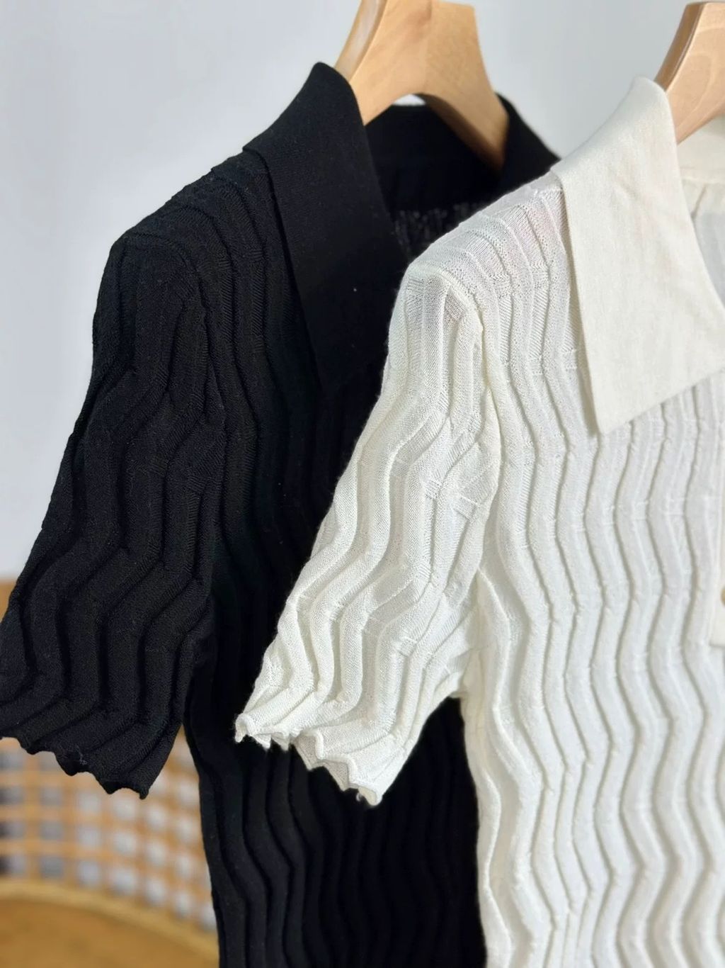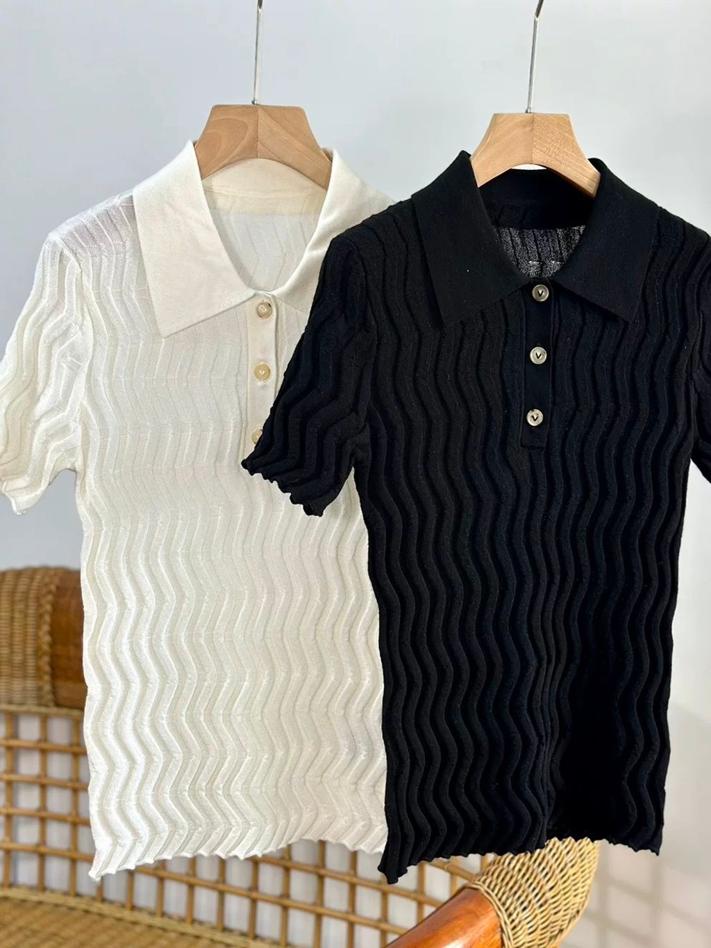 Indie Designs Embossed Short-sleeves Wool Polo Shirt