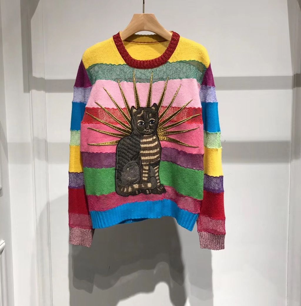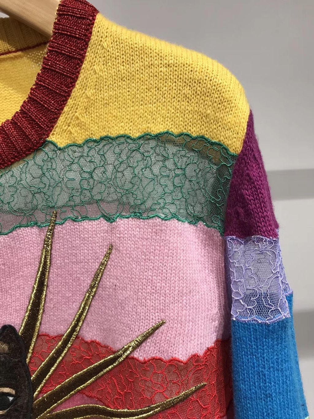 Indie Designs Embroidered Wool and Lace Knit Pullover Jumper