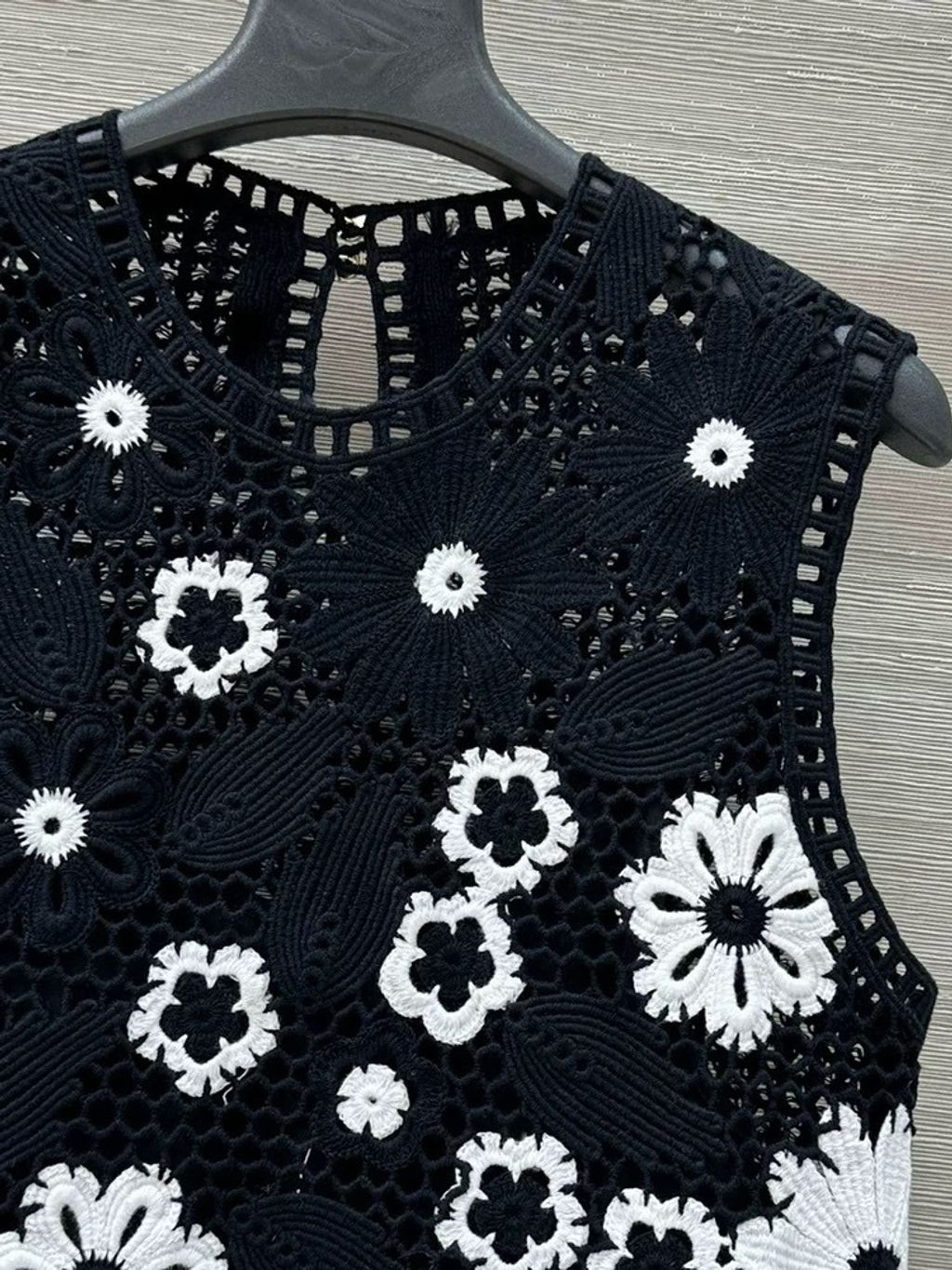 Indie Designs Floral-Pattern Sleeveless Cotton-Crochet Top