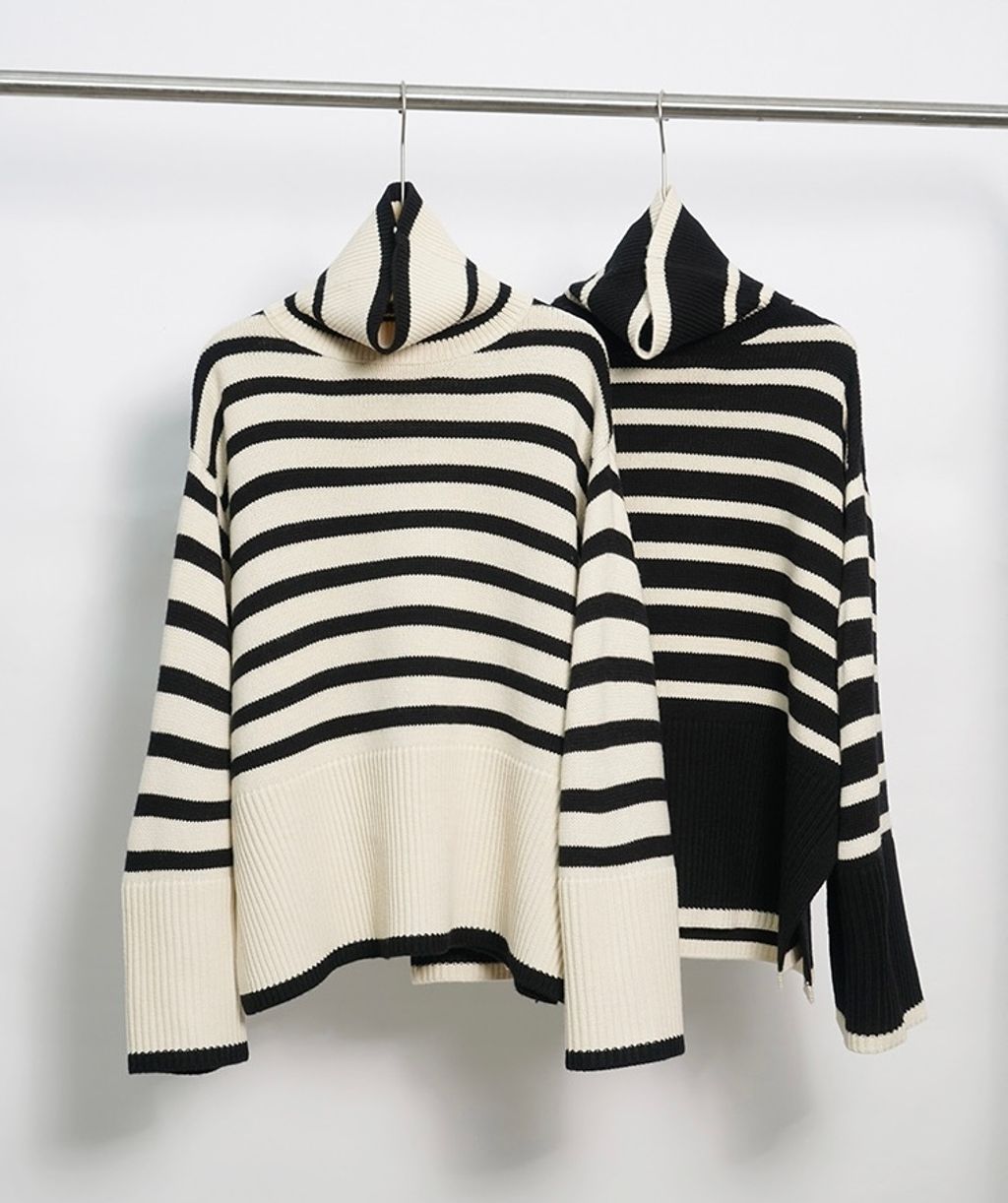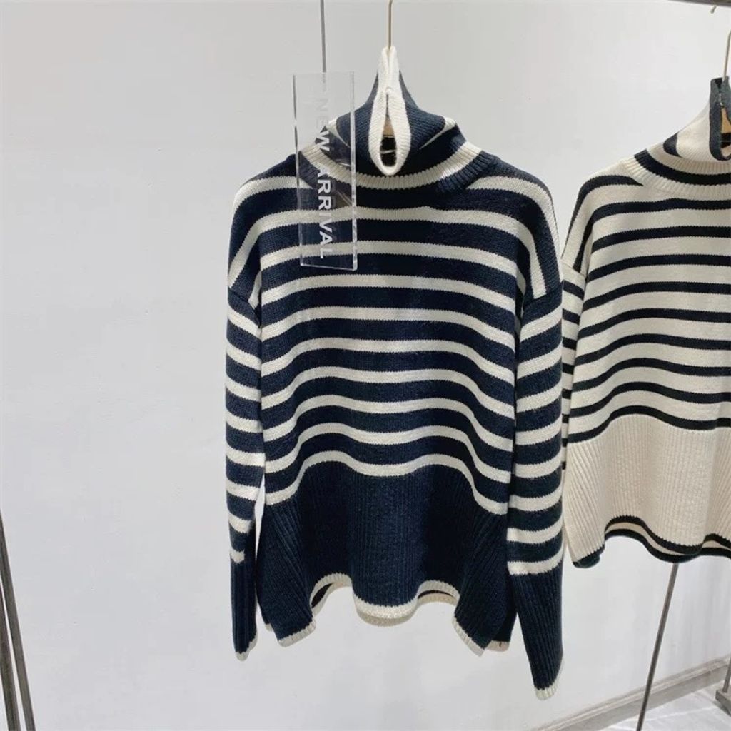 Indie Designs Turtleneck Stripe Wool Sweater