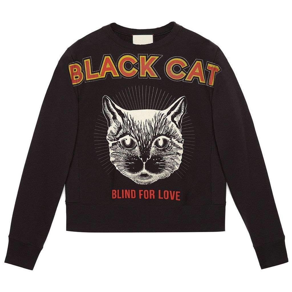 Indie Designs Black Cat Print Cotton Sweatshirt