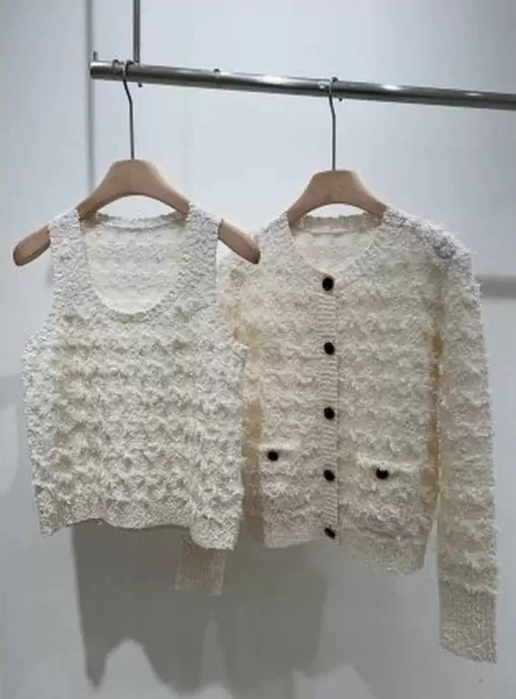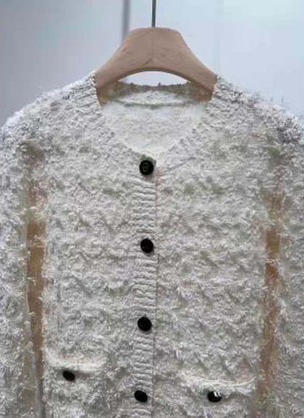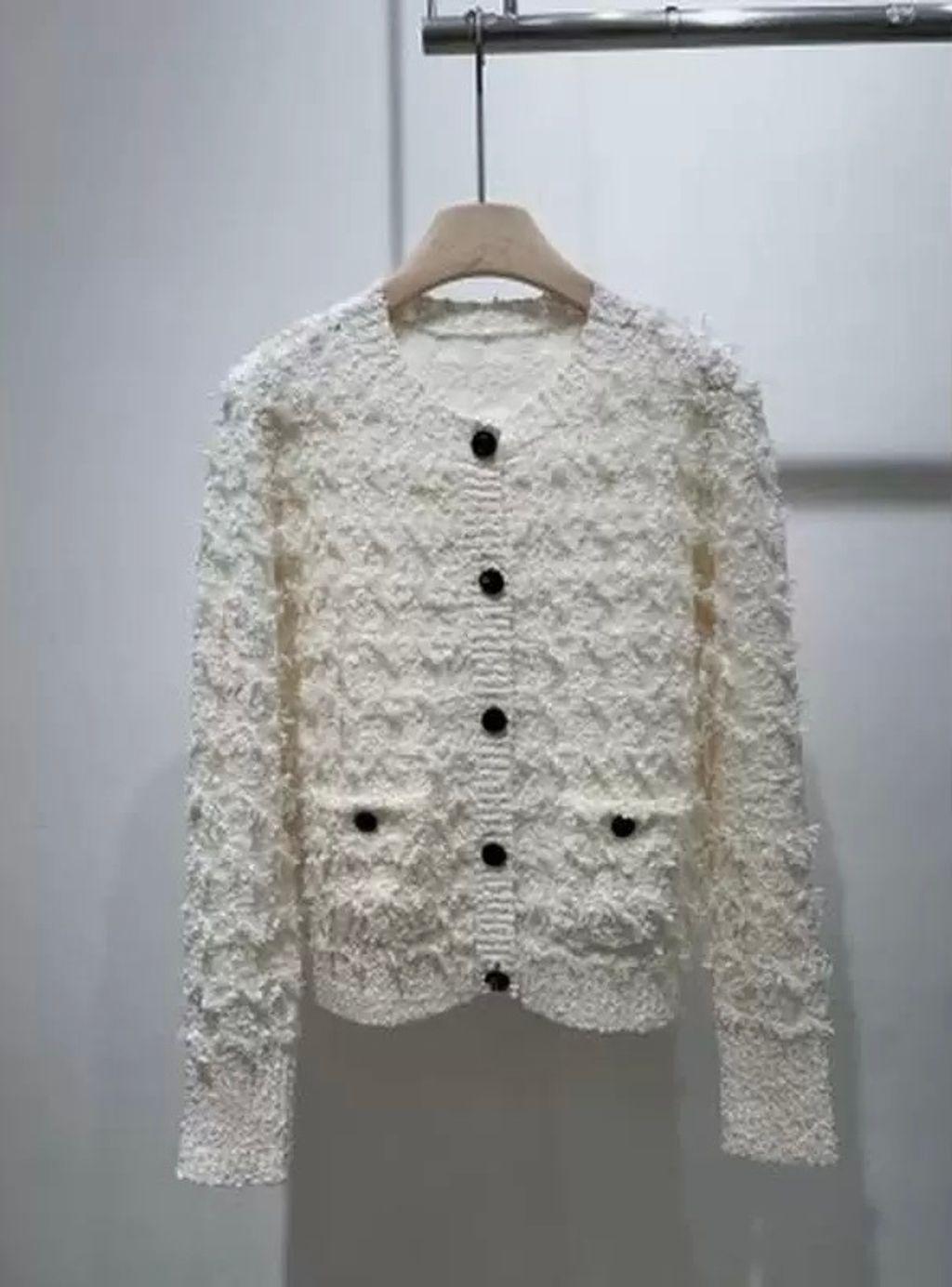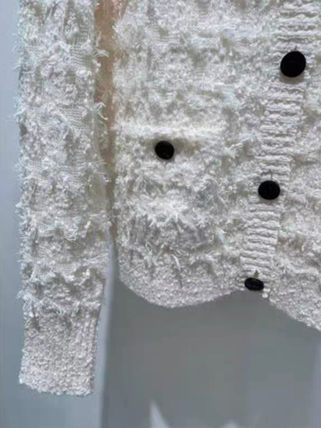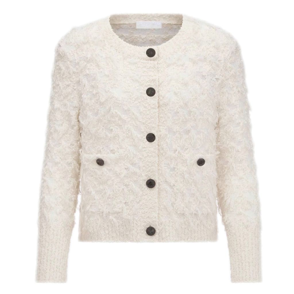 Indie Designs Bouclé Knit with Houndstooth Motif Cardigan