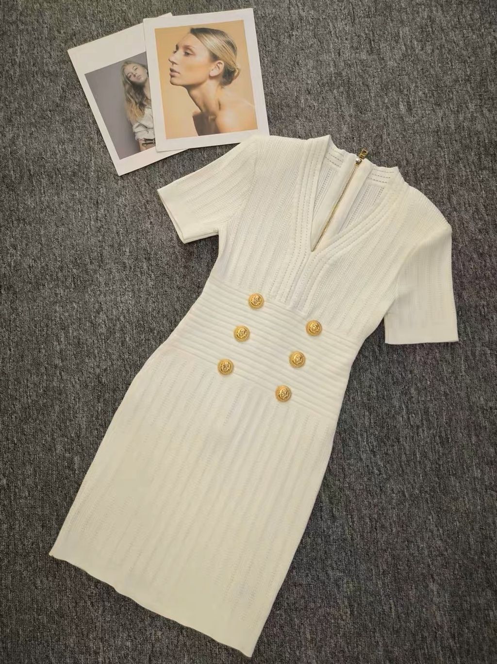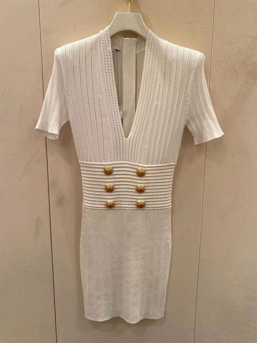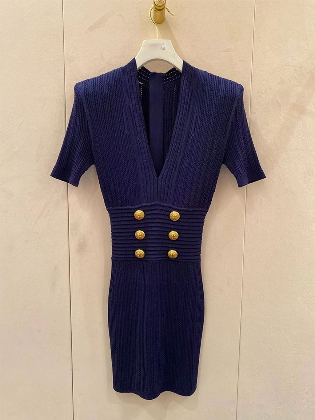 Indie Designs Button-embellished Ribbed-knit Minidress