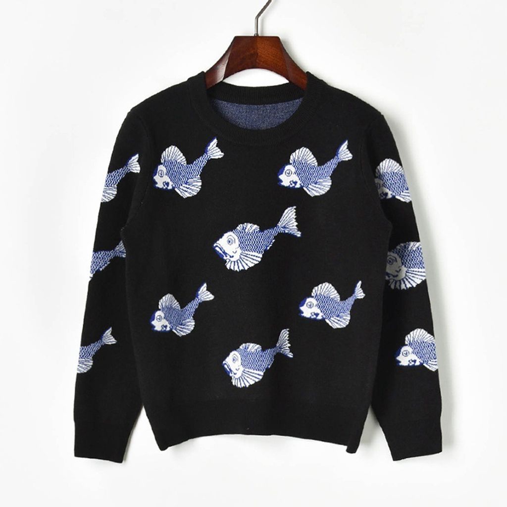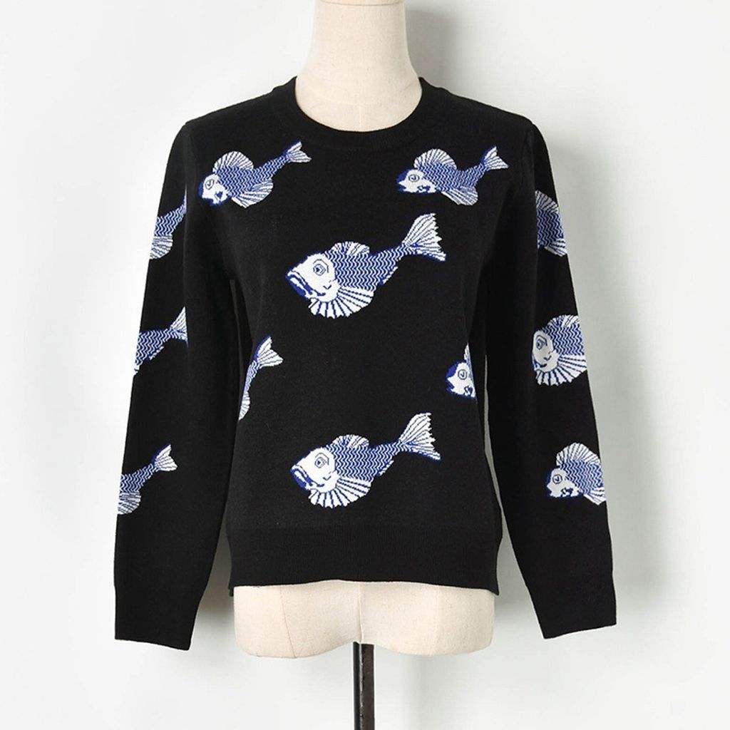 Indie Designs Koi Pond-jacquard Wool-blend Sweater