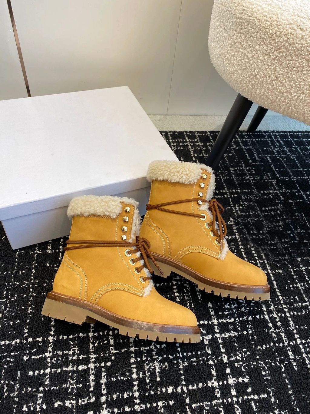 Indie Designs Lace-up Calfskin and Shearling Mid Boot