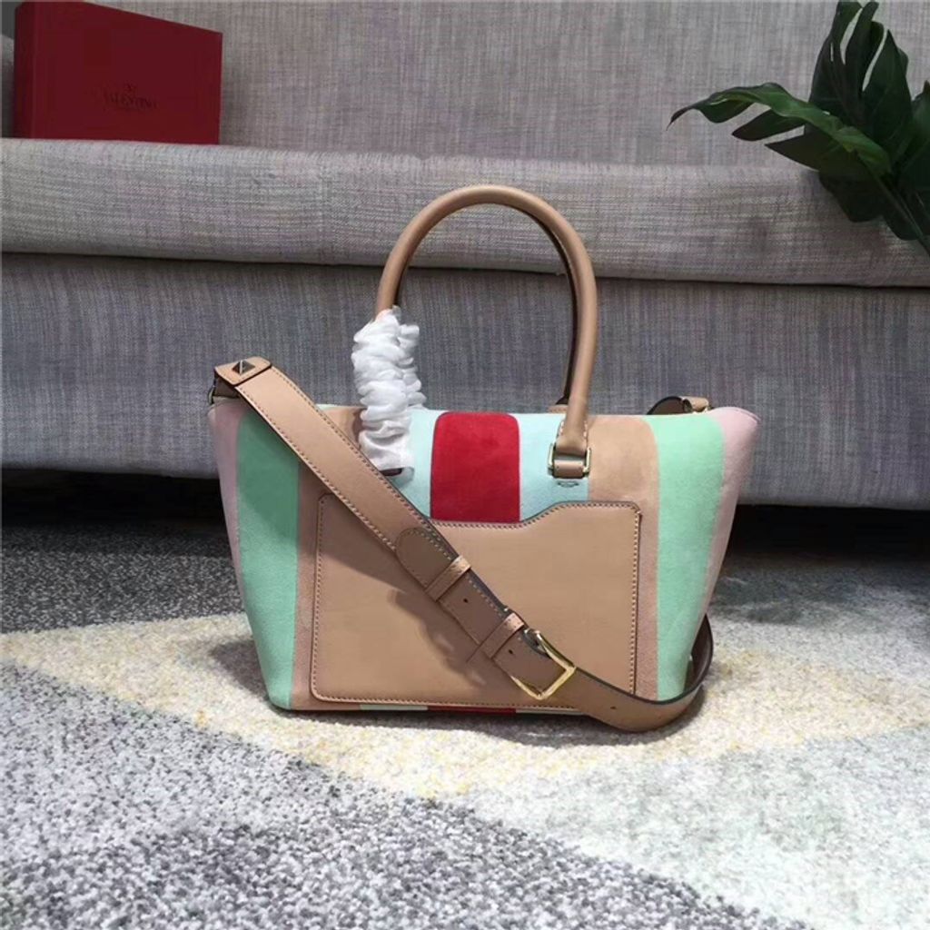 Indie Designs Multicoloured Stripes Suede Leather Tote Bag
