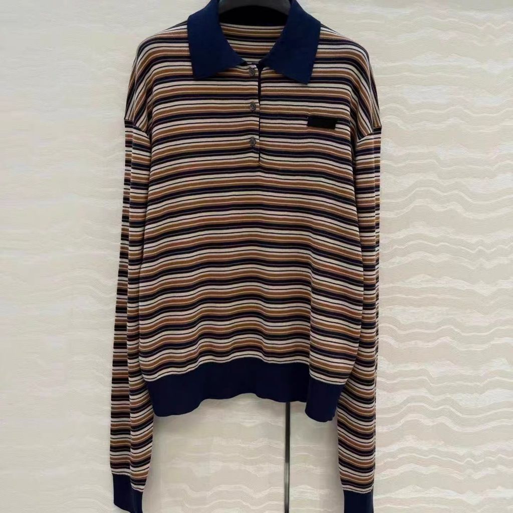 Indie Designs Striped Virgin Wool Polo Sweater