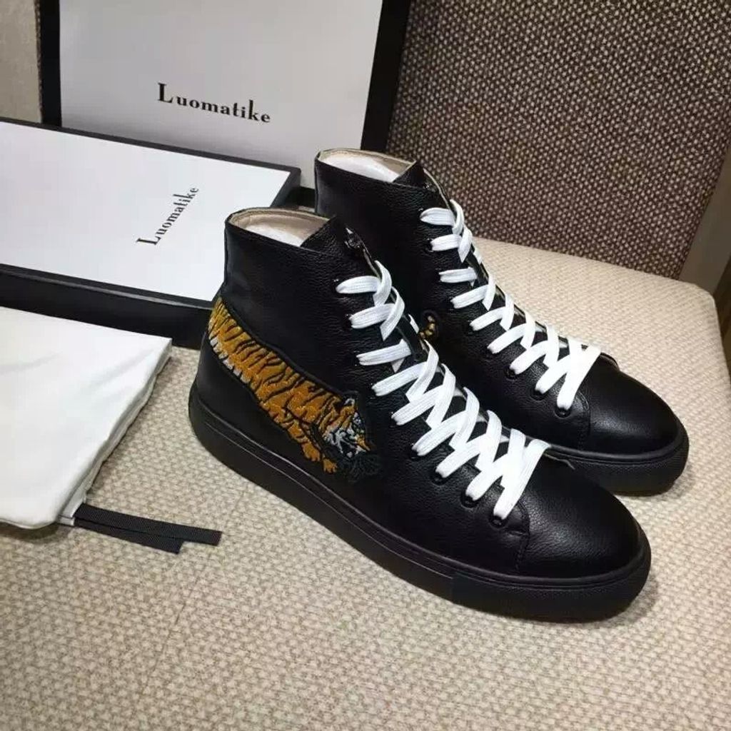 Indie Designs Tiger Embroidered Stud Leather High Top Sneakers