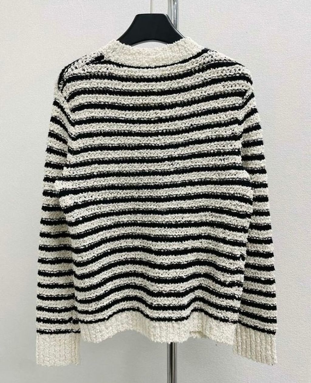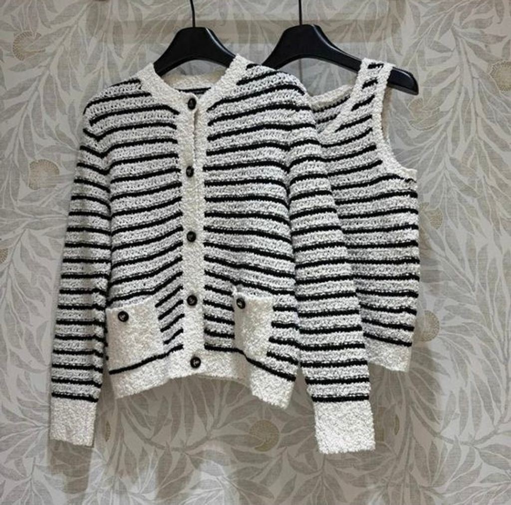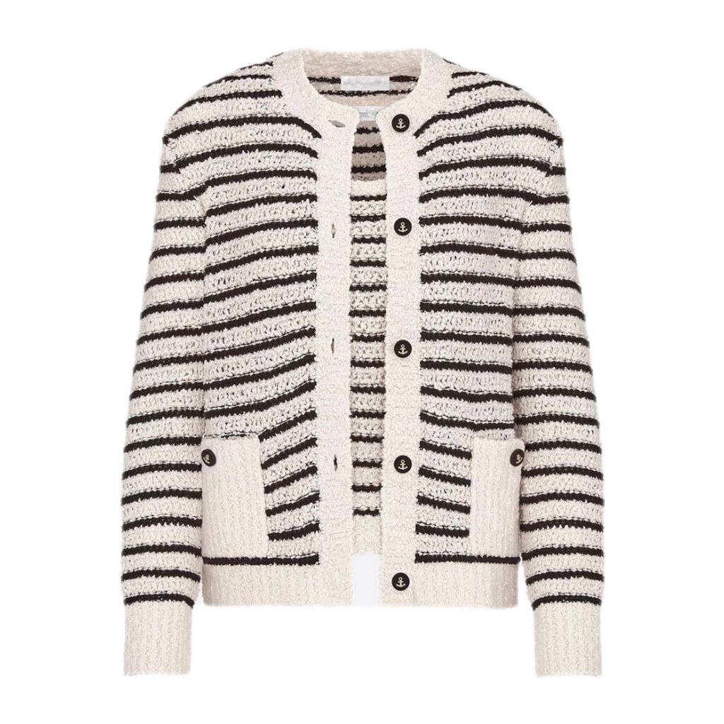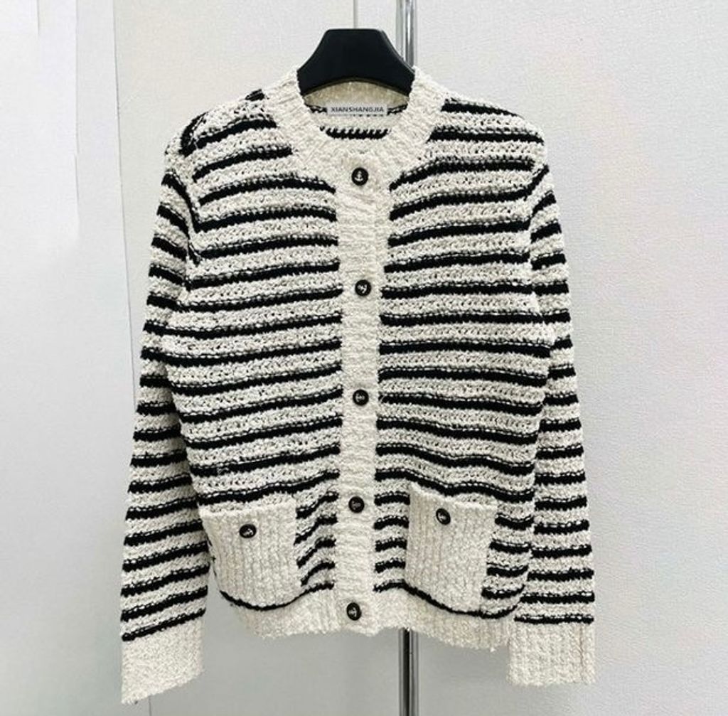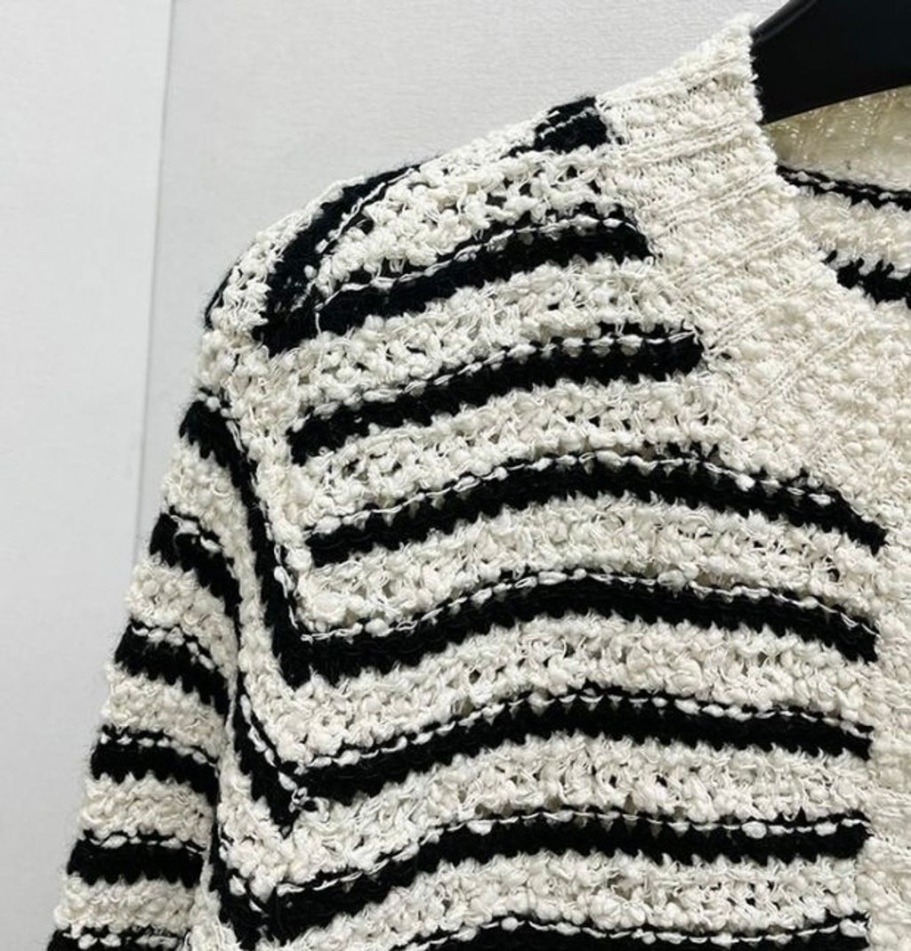 Indie Designs White and Black Blended Wool and Bouclé Knit Cardigan
